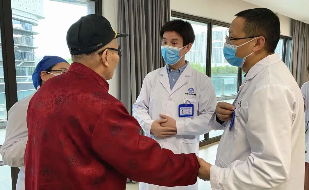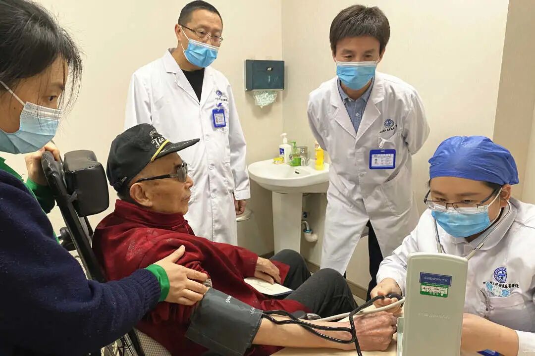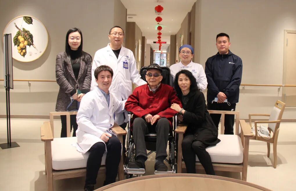 曾参加过抗日战争及解放战争的陈玉春老同志,年前因重度骨质疏松症伴腰椎骨折入院,在骨科团队实施经皮穿刺腰2、腰5椎体球囊扩张成形术后,恢复良好,现已顺利出院回到养老院。值建党100周年之际,陈宏刚副院长带领骨科资深医护团队走进养老院,对93岁高龄的陈老开展健康回访及慰问,为老革命送上关心和问候。