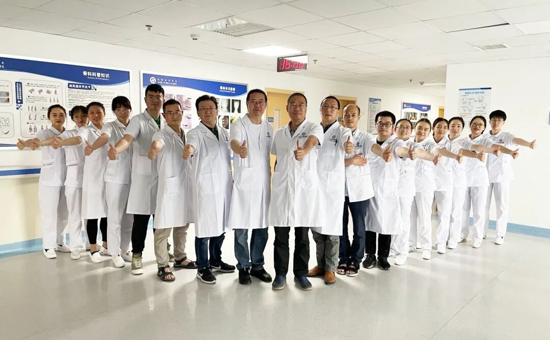 7月8日 一男子在家修理柜门时 不慎被电锯锯伤右腕及右足跟 成都东篱医院急诊科16:36接到120中心通知,于16:44到达患者家中,接诊时患者出血如泉涌,面容痛苦,大汗淋漓,予以包扎止血,补液扩容治疗后送入我院,立即搭建急救绿色通道展开救治。 入院诊断为:1.右跟骨开放性骨折;2.右跟腱断裂;3.右手******掌骨基底部开放性骨折;4.右手大小多角开放性骨折伴腕掌关节脱位;5.右拇长伸肌腱、拇短伸肌腱、拇长展肌腱、食中指伸肌腱、桡侧腕长伸肌腱、桡侧腕短伸肌腱断裂;6.右手及腕部皮肤挫裂伤伴软组织缺损。 伤情就是命令,时间就是生命。骨科开展紧急会诊,经过详细部署的术前讨论后,决定于9日20:00在全麻下行“右跟骨开放性骨折复位内固定术+右跟腱断裂修补术,右手******掌骨基底部开放性骨折复位内固定术+右腕骨开放性骨折伴腕掌关节脱位复位内固定术+右侧腕部伸肌腱断裂修补术+任意皮瓣修补术”,通过这一长串的手术名称都能看出这个手术难度极高。 术中所见:右足从内踝到跟部长约10cm的横行不规则切口,创缘不整齐,创面内伴活动性出血,右跟骨开放性骨折,骨折块向近端分离移位,右跟腱近跟骨止点处断裂,创缘不规则。右手桡侧有一长约12cm“S”型不规则创口,污染重,探查见右手******掌骨基底部开放性骨折,右手大小多角骨开放性骨折伴腕掌关节脱位,右拇长伸肌腱、拇短伸肌腱、拇长展肌腱、食中指伸肌腱、桡侧腕长伸肌腱、桡侧腕短伸肌腱断裂,右手大鱼际肌至腕背部皮肤挫裂伤严重伴软组织缺损。 术中骨科团队精力合作,清理右跟骨骨折断端的血凝块及软组织,点氏复位钳复位跟骨后,克氏针临时固定,经钻孔,测深后,拧入3枚埋头空心螺钉固定。术中C臂透视见跟骨骨折复位良好,内固定牢固有效。游离跟腱并对跟腱断端纤维进行修整,以Kessler法吻合跟腱,背伸跖屈踝关节无异常,松止血带后彻底止血。 经过4个小时的奋战,手术于凌晨0:00顺利结束。除了技术,对于医生的体力也是极大的考验。患者回到重症监护室病房,给予补液、抗感染等治疗,手后第二天病情稳定后安全转入骨科进一步诊治。目前患者伤口恢复良好,右上肢、右下肢高分子石膏夹板外固定制动,肢端感觉、循环尚可。 成都东篱医院骨科作为一支年轻有为、充满激情、高素质、知识型团队,刻苦钻研业务,苦练基本功,经过多例复杂手术历练,积累了丰富的手术经验。每一次手术的成功,都是对骨科团队“十年磨一剑”的验收考验,彰显了团队的力量和实力!为东篱骨科点赞!
