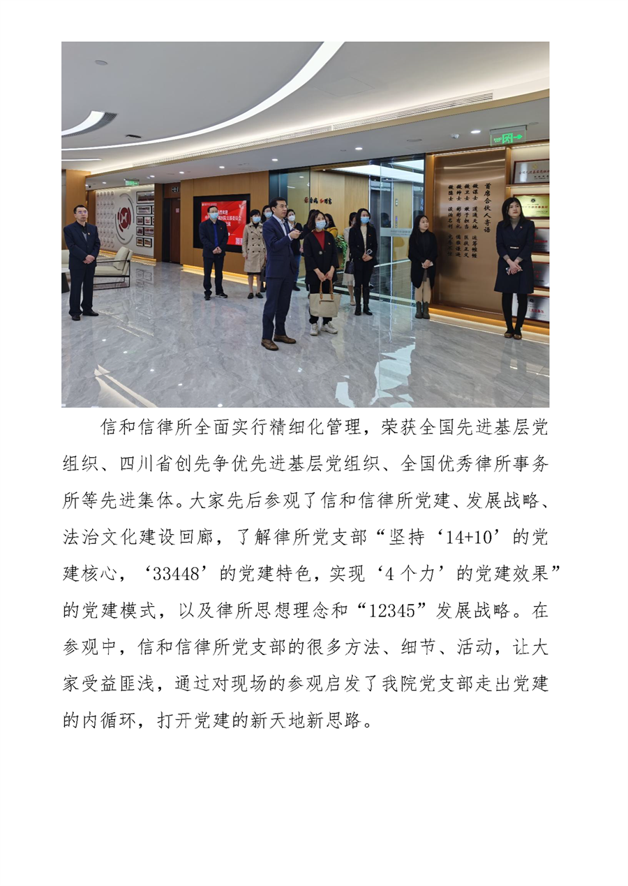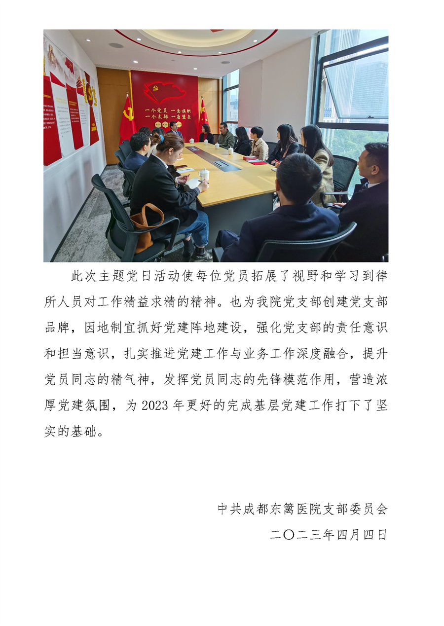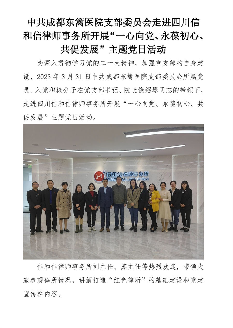 中共成都东篱医院支部委员会走进四川信 和信律师事务所开展“一心向党、永葆初心、 共促发展”主题党日活动